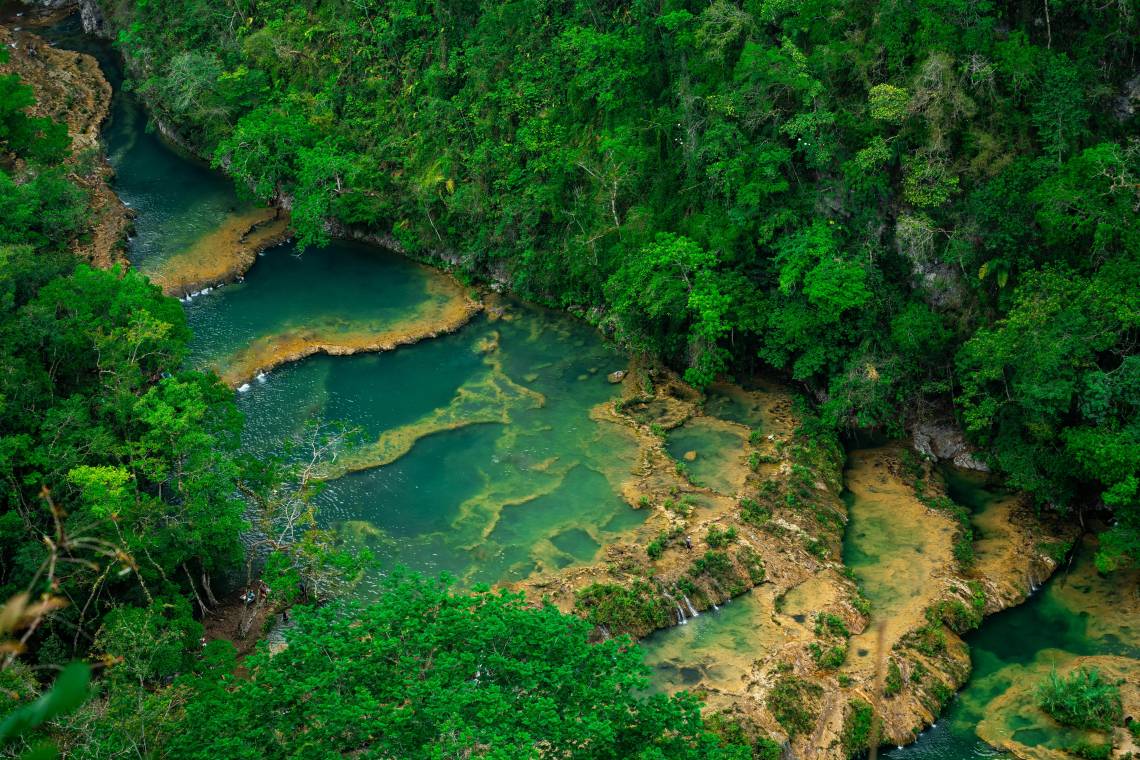 Cobán, conocido como el corazón verde de Guatemala, es un destino que deslumbra con su exuberante naturaleza y rica cultura maya q'eqchi'. Rodeada de montañas cubiertas por densos bosques nubosos, esta encantadora ciudad es el punto de partida ideal para explorar maravillas naturales como las cascadas de El Salto de Chilascó o el río Cahabón, famoso por su color turquesa y su conexión con Semuc Champey, uno de los tesoros naturales más impresionantes del país. Las plantaciones de café y cardamomo, que llenan el aire con su aroma único, son otro atractivo que resalta la importancia agrícola de la región.